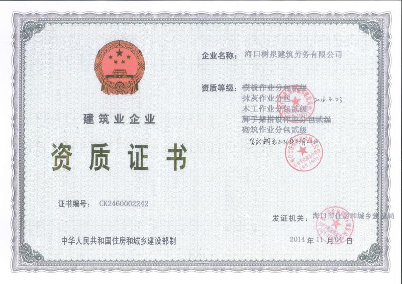 ??跇淙ㄖ趧?wù)有限公司成立于2011年,公司位于海口,其前身是一家專業(yè)建筑施工隊,自2004年即開始在海南從事建筑勞務(wù)施工。自成立至今,公司已經(jīng)擁有一支科學(xué)管理、質(zhì)量過硬、能打硬仗,搶工期的專業(yè)隊伍。能獨立承擔(dān)大中型工業(yè)與民用建筑 、室內(nèi)外裝修、各類機電設(shè)備安裝工程。代表工程有??跒I海華庭、三亞時代海岸T01/02/04/05棟高層、合肥東?;▓@二期、陵水富力灣B區(qū)高層、三亞金中海(酒店)、瓊海大印經(jīng)典花園、??诃h(huán)球海景大酒店(四星級酒店,在建中)、陵水珍珠大廈(五星酒店)、??谌f達廣場、美蘭機場二期。